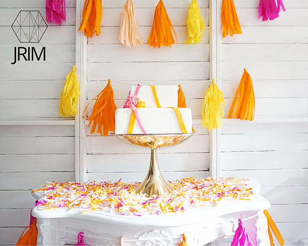 So this whole look is perfect for those that are looking to have a bright wedding cake table, dessert buffet, or even a photo backdrop (imagine all the possibilities!). The key to this look is to keep the basics simple and amp it up with bursts of color using crepe paper tassels and confetti. And here’s the colour palette if you need it!