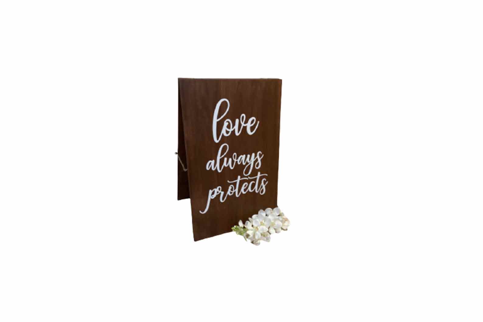 Aisle Board. Available in 6 designs. *Disclaimer: Photo shown is for reference only. To be rented out per 1 unit and not as set. Love Above all else, Love Always Protects, Love Always Hopes, Love Always Trusts, Love Always Perseveres, Love Never Fails Dimensions: h-60cm, w-40cm. Rental price: RM 35/ unit Stock quantity: 1 unit for each design [booqable_button id="ab01-aisle-board"]