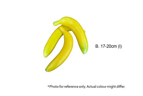 A. One bunch of 5 pieces of artificial banana. B. Single piece of banana. (To be rented separately, price is per unit and not as set). Dimensions: A. 20cm (l) x 12cm (d) x 12cm (w), B. 17-20cm (l). Rental price: A. RM5/bunch, B. RM2/unit. Stock quantity: A - 9 bunch, B - 10 units. [booqable_button id="aft02-tropical-fruits-banana"]