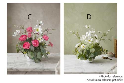 • C – 20cm (d) x 41cm (h) : Pink & White Floral Arrangement : RM38 each.