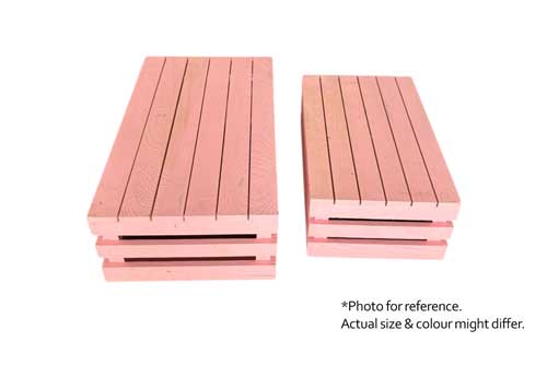 A set of 2 timber crates in pink colour. Dimension: