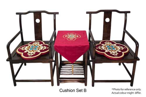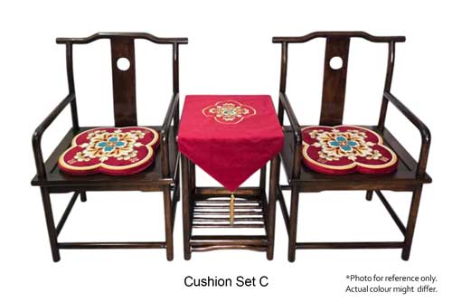 A set of Ming chairs and table. Suitable for tea ceremony and oriental decors. To be rented as a set. *Remark: Cushion set can be selected (Set A/B/C) or removed.