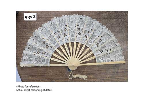 Vintage-inspired fan. Non-functional. Overall dimensions: 26 cm (w) x 35 cm (h) Rental price: A - RM 35/unit, B - RM17/unit Stock quantity: A. 2 units, B. 1 unit. [booqable_button id="vf01-vintage-fan"]