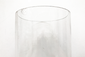 Cylindrical glass vase. We also carry some at a discounted price due to slight chip at the rim of the vase.
