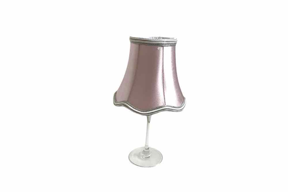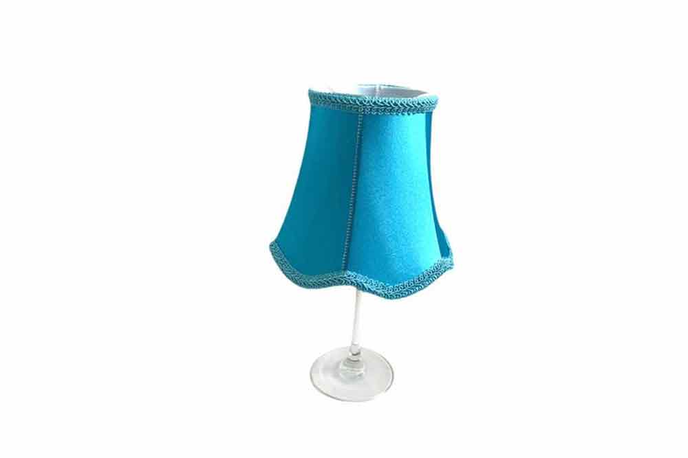 A beautiful table top lampshade using tealight. Rented with a wine glass as its stand. Available in blue or pink shade.