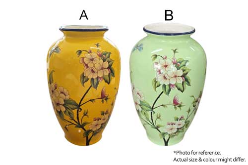 Ceramic vase with floral motif in Yellow and Green colour. Suitable for chinoiserie , floral, old shanghai, Chinese and vintage themes. Dimensions: