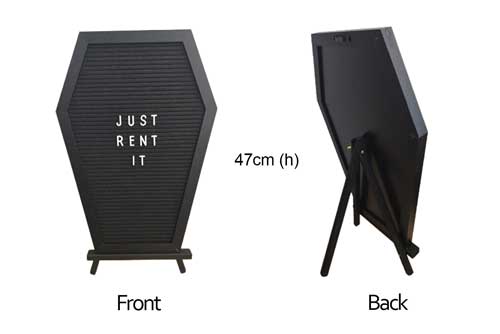 Coffin shaped Felt display board with 3/4 inches plastic letters & easel stand suitable for your Halloween party. *Notes: Inform us your wording before collection day.