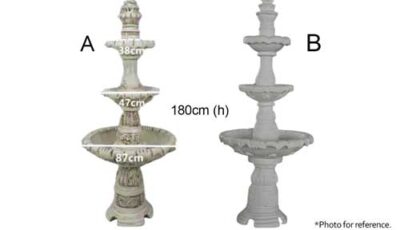 Three tier Water fountain feature for a classical decoration purposes. Overall dimensions: A. 180 cm (h) x 87 cm, 47cm, 38cm (diameter) B. 180 cm (h) x 87 cm, 47cm, 38cm (diameter) Rental price: RM […]