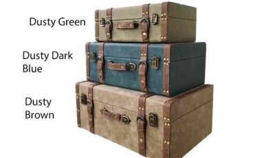 Medium sized duck egg blue leather vintage-inspired luggage. *Disclaimer: Photo shown is for size reference only. To be rented out per 1 unit and not as set. Dimensions: 28 cm x 10.5 cm x 24 […]
