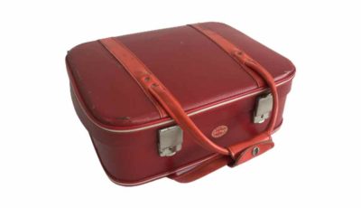 Red checkered leather vintage-inspired luggage. Dimensions: 29 cm (l) x 20 cm (w) x 9 cm (h) Rental price: RM 15.00/unit Stock quantity: 1 unit