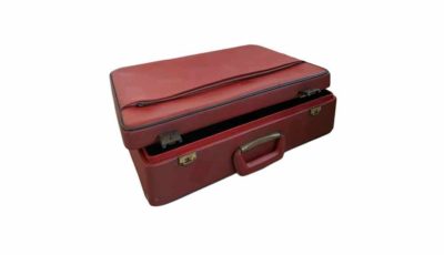 Red leather vintage-inspired luggage. Dimensions: 50 cm (l) x 15 cm (w) x 38 cm (h) Rental price: RM 25.00/unit Stock quantity: 1 unit