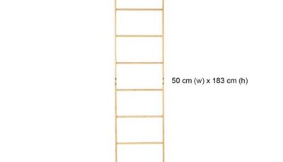 Wooden ladder rack. Dimensions: 50 cm (w) x 183 cm (h). Rental price: RM 25.00/unit. Stock quantity: 1 unit.