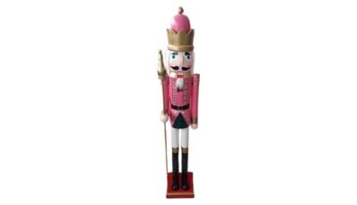 Nutcracker in pink uniform decoration perfect for your Christmas setup. Dimensions: 120 cm (h) Rental price: RM100/unit. Stock quantity: 2 units.