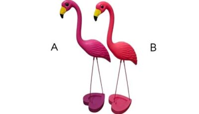 Pink and orange coloured bowing plastic flamingo. Dimensions / Stock Quantity: A. 66 cm (w) x 11 cm (d) x 43 cm (h) – 2 units. B. 38 cm (w) x 11 cm (d) x […]