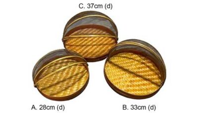 Traditional food tray with mesh cover made from bamboo. Available in 3 different sizes. *Disclaimer: To be rented separately. Not as set. Dimensions: A – 30cm (d), B – 36cm (d), C – 41cm (d) […]