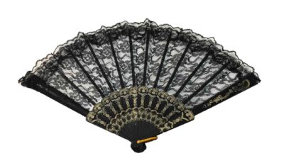 Black foldable lace fan. Suitable for Victorian, Gatsby, Lolita and Vintage themes. Dimensions: Standard fan size. Rental price: RM 4/unit. Stock quantity: 5 units.