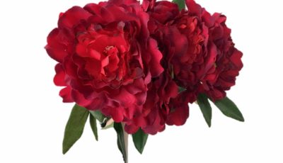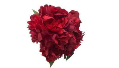 Large scarlet red artificial peony bush. 5 heads per bush. Size: 45 cm (l) Rental price: RM 6.50/unit. Stock quantity: 26 units.