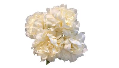 Large Duchess White artificial peony bush. 5 heads per bush, Size: 45 cm (l) Rental price: RM 6.50/unit Stock quantity: 3 units