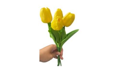 A set of yellow artificial tulips. 10 stalk per set. Dimensions: Approx. 30 cm (h) Rental price: RM 5.00/set Stock quantity: 4 sets