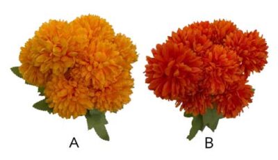 Yellow & Orange colored artificial chrysanthemum bush. 9 stalks per bush. Size: 16cm (d) x 40cm (h) Rental price: RM 5.00/unit Stock quantity: A. 68 units & B. 33units
