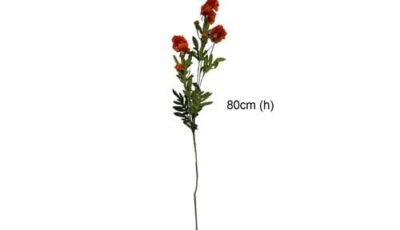 Long stalk of orange artificial carnation. Dimensions: Approx. 80 cm (h). Rental price: RM 4.00/unit. Stock quantity: 19 units.