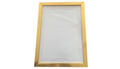 Warm gold wall frame for A4 size. *No stand provided. Dimensions: 24 cm (w) x 33 cm (h) Rental price: RM 7.00/unit Stock quantity: 1 unit
