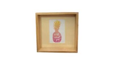 Wooden square frame. It can fit a 10 cm x 15 cm artwork. Dimensions: 22 cm (d). Rental price: RM 8.00/unit. Stock quantity: 2 units.