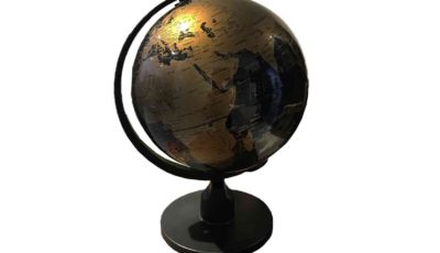 A black and gold globe. Dimensions: 26 cm (h) Rental price: RM 15.00/unit Stock quantity: 1 unit