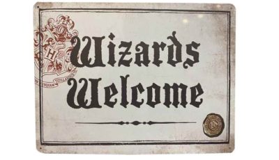 Harry Potter props. Wizard Welcome metal Sign. Dimensions: 40 x 30 cm Rental price: RM 15.00/unit Stock quantity: 1 unit