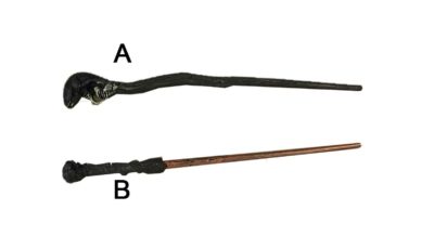 Harry Potter props. Magic Wand. Available design A, B & design C. Dimensions: 45 cm (l) Rental price: RM 5.00. Stock quantity: A & B – 2 units each, C – 1 unit.