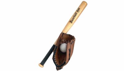 One set of baseball with wooden bat, ball and glove. Dimensions: Baseball bat – 62cm (h) Rental price: RM 30.00/set Stock quantity: 1 set