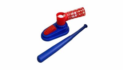 One set of baseball props with plastic bat (available in blue) and a ball launcher. Dimensions: 20cm (h) x 45cm (l) Rental price: RM 10.00/set Stock quantity: 1 set
