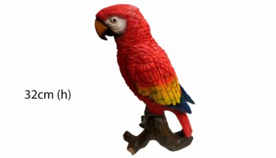 A ceramic parrot figurine. Suitable for animals, pirates, tiki and aloha themed event or parties. Dimensions: Approximately 9 cm (w) x 25 cm (h) Rental price: RM 20.00/unit. Stock quantity: 2 units