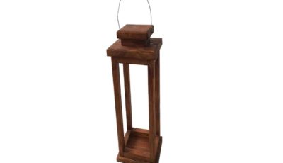 Tall wooden rustic lantern. Only to be used with LED candles. Any wax residue will incur in damages fees. Dimensions: 14 x 18 x 54 cm Rental price: RM 18.00/unit Stock quantity: 30 units