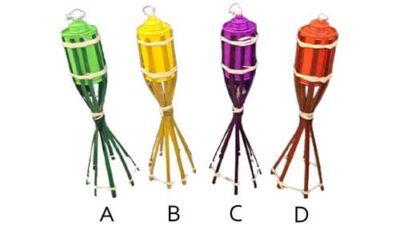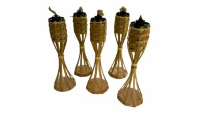 Tiki Torch / Pelita Light. Able to stand on its own. Suitable as table decor. Dimensions: 35cm(h), 10cm(d) base. Rental price: RM 4/unit. Stock quantity: 12 units.