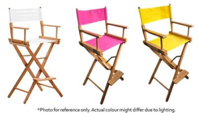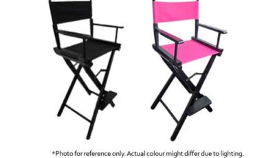 Foldable director’s chair with black/pink fabric. Kindly inform our team upon placing order which fabric colour to use. Dimensions: 53.5 cm (w) x 116 cm (h) Rental price: RM 80.00/unit Stock quantity: 2 units