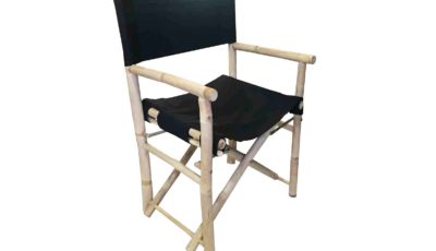 A bamboo director chair with black fabric. Dimensions: 56 cm (w) x 90 cm (h) Rental price: RM 80.00/unit Stock quantity: 2 units