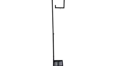 Metal adjustable lantern stand with rectangle base in black colour. Dimension: Adjustable up to 198cm (h) x base width 32cm (w) Rental price: RM 25.00/unit Stock quantity: 6 units