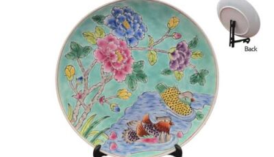 Chinese Porcelain Plate with stand. Suitable for console table decor. Dimension: 26.5cm (h) x 25.7cm (d) Rental Price: RM 25.00/unit. Stock Quantity: 1 unit.