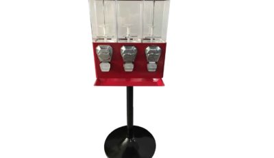 Classic vintage red gumball candy vending machine. Cast metal gumball machine base, lid, and coin mechanism. Includes instructions for “free spin to work without coins. Dispenses small gumballs (0.62” or smaller), candy, or nuts Dimensions: […]