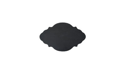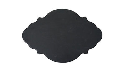 Medium ornate black chalk board. Dimensions: 34 cm (w) x 20 cm (h) Rental price: RM 5.00/unit Stock quantity: 2 units Note: you may request for chalk upon pick up (free of charge)