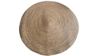 A round jute carpet. Dimensions: 152 cm (d) Rental price: RM 55.00/unit Stock quantity: 1 unit