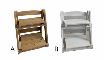 Wooden rustic display riser, available in natural wooden colour (A) and whitewashed (B). Dimensions: 30cm (l) x 35cm (h) Rental price: RM 20.00/unit Stock quantity: 3 units – natural (A), 2 units – whitewashed (B).