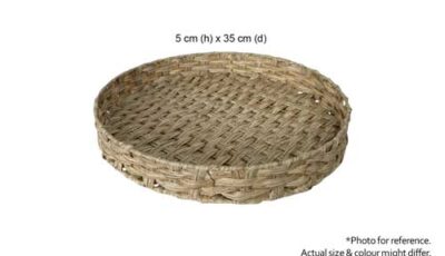 A rattan tray suitable for your traditional set up. Dimensions: 29cm (d) x 6cm (h). Rental price: RM 20.00/unit. Stock quantity: 1 unit.
