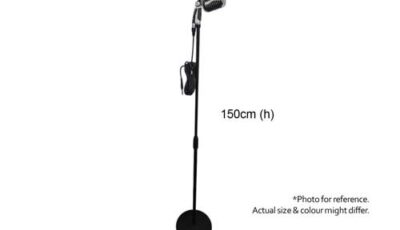 Plastic microphone prop set. Not working. As Props only. Dimensions: 20 cm (microphone diameter) x 180 cm (adjustable – max height). Rental price: RM 58/unit. Stock quantity: 1 unit.