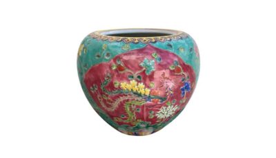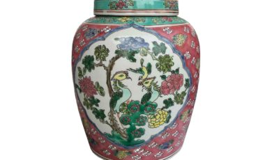 Beautiful Antique Peranakan Nyonya porcelain pot with Phoenix and Peonies motifs in assorted colors. Dimensions: 23 (h) x 28 cm (d) Rental price: RM 80.00 /unit Stock quantity: 1 unit