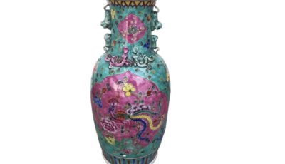 Beautiful Peranakan Nyonya Porcelain Vase with Phoenix and Peonies motifs in pink and green hues. Dimensions: View In The Store Rental price: RM 120.00 /unit Stock quantity: 2 units